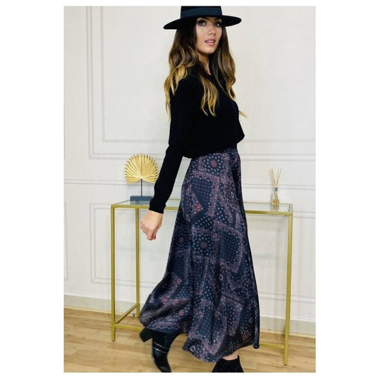 Women's Bohemian Elastic Waist Tie Tiered Maxi Skirt