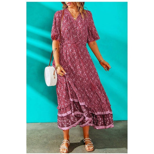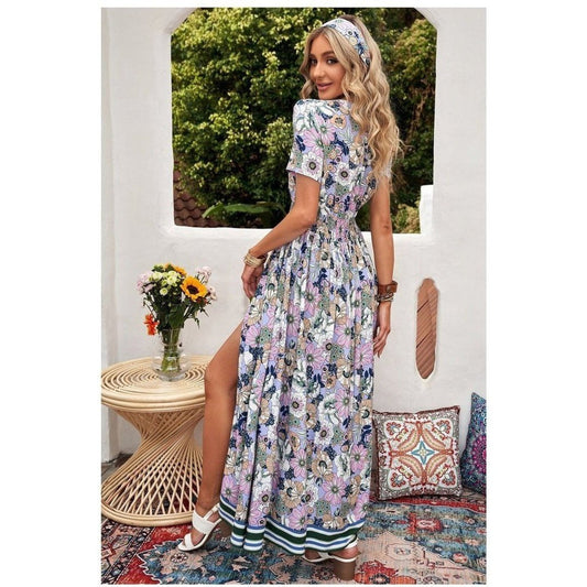 Paisley Printed Button Keyhole Back Belted Mini Dress