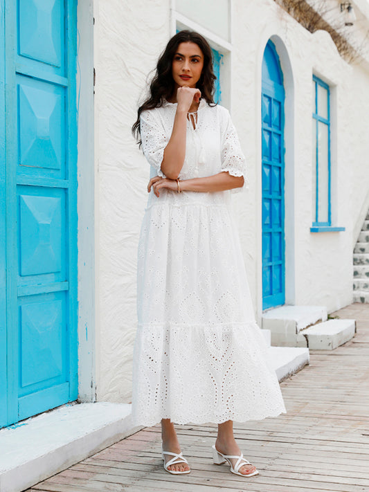 Women's Elegant Pleated Dress One Shoulder Waist Hollow Dress