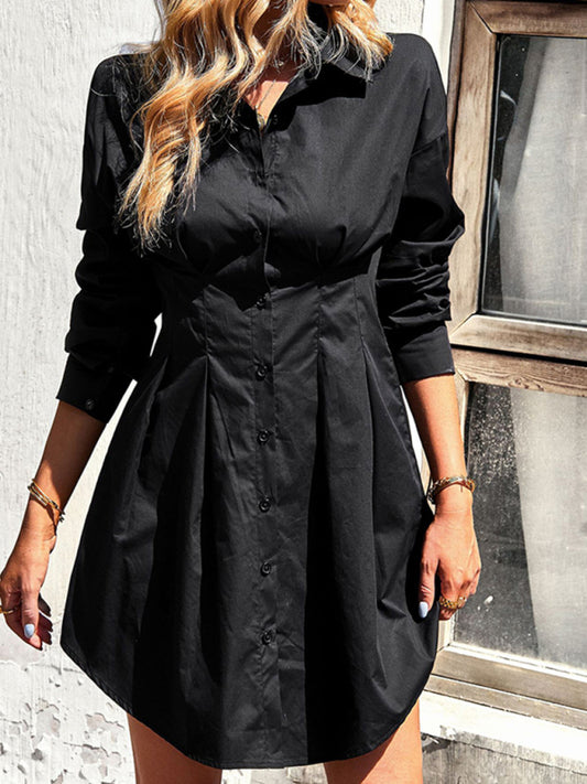 Women's Belted Long-sleeve Cotton Corduroy Shirtdress