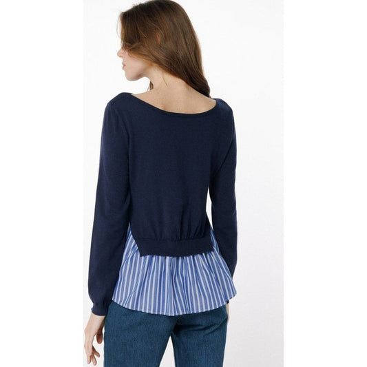 Slit Striped Round Neck Long Sleeve Sweatshirt