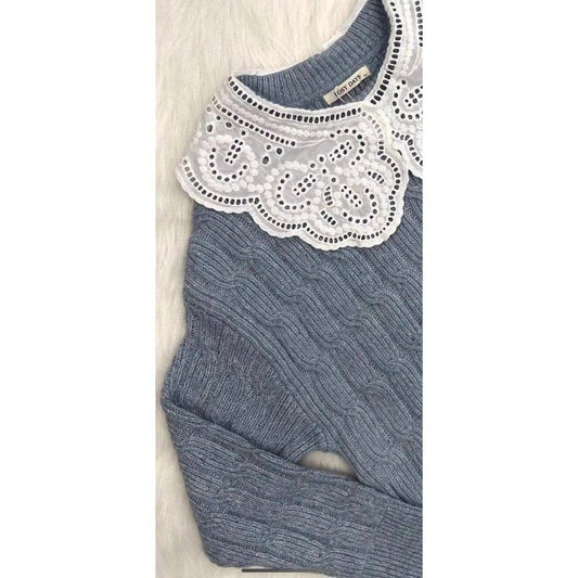Sold outHollowed Bubble Sleeve Knit Sweater