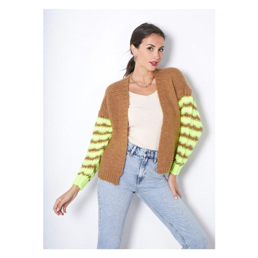 Brown Checkered Floral Print Striped Sleeve Sweater